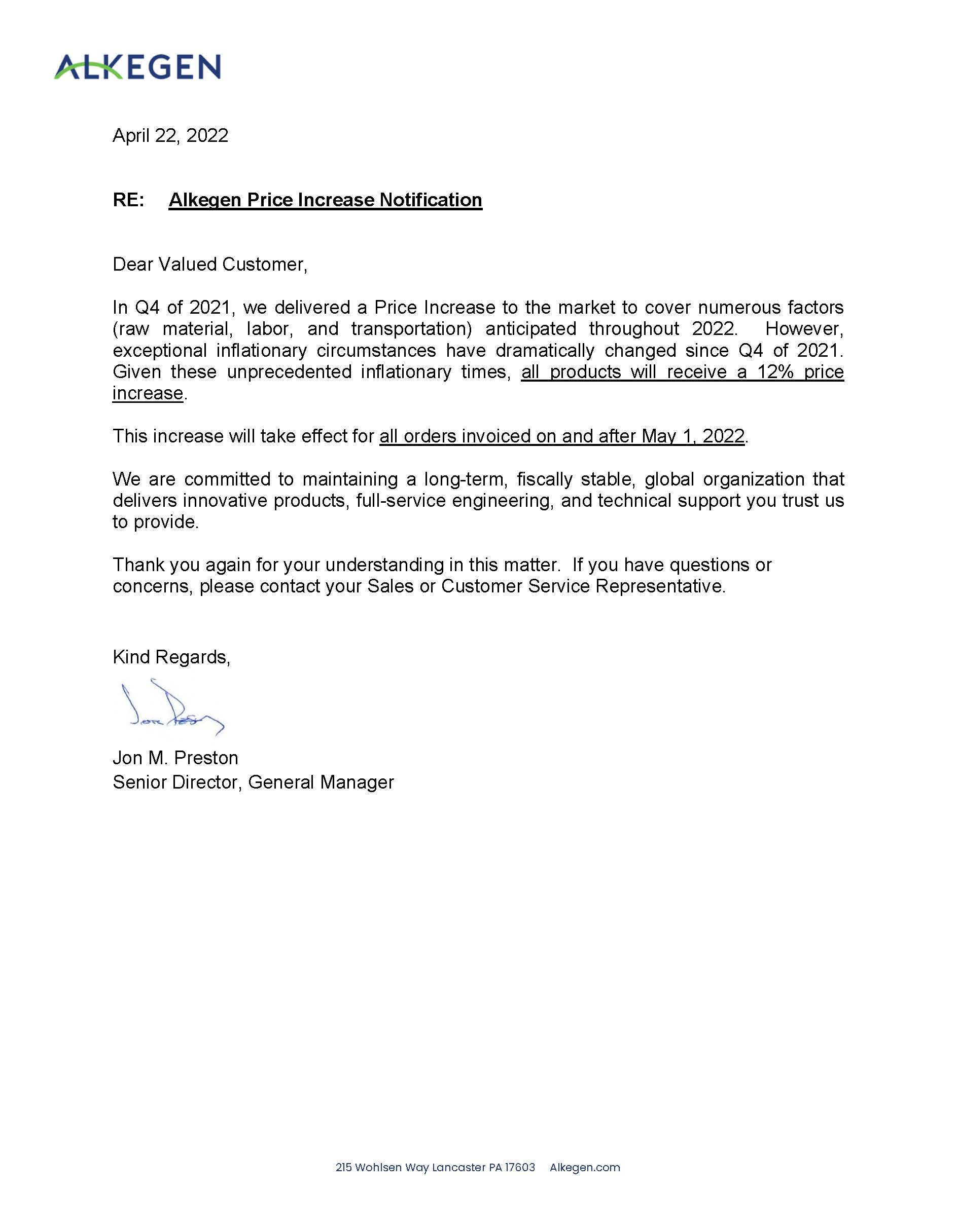 美國InterFace所有材料漲價12% 的緊急通知