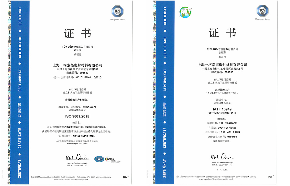 為了提升產(chǎn)品品質(zhì),加強(qiáng)企業(yè)市場競爭力。一柯索拓通過TUV復(fù)核,于2022年6月更新了ISO9001及IATF16949證書。